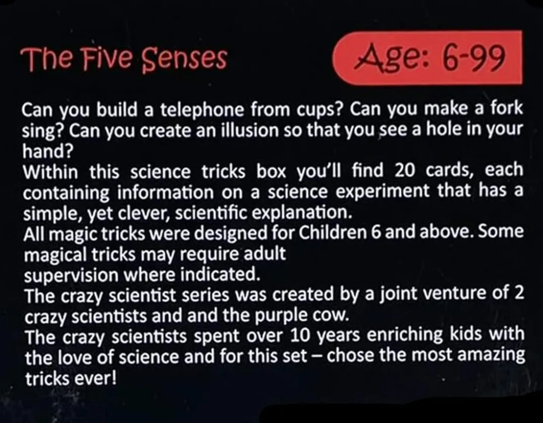 Perfect for curious kids, this brilliant set includes 20 cards, each detailing a “magic trick” demonstrating a scientific concept. Can you build a telephone from cups or make a fork sing? What about creating an illusion so that you see a hole in your hand? Using simple household items, explore the wonders of the five senses with the Crazy Scientist and fool your friends into thinking you’re a real magician. Science meets magic – very exciting!
