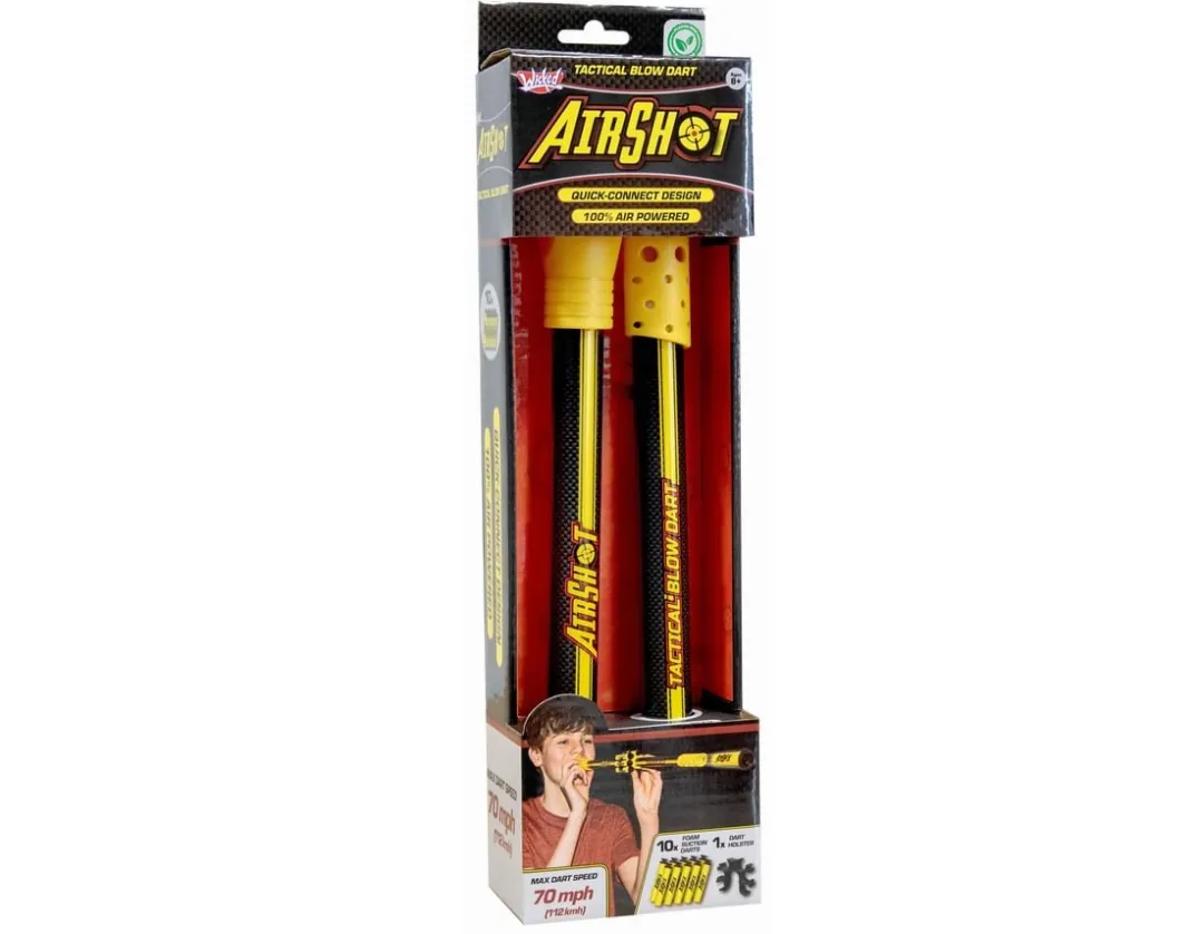 Enjoy safe, action-packed entertainment, shooting soft foam suction darts up to an incredible 70 mph with a moulded mouthpiece for concentrated air power. Easy to use, simply blow to shoot the suckered dart and sticks easily and safely to windows – how good is your aim? Has a sleek quick-connect design to assemble the two pieces, making an impressive 62cm length and comes with ten darts. Very satisfying to use and lots of fun!