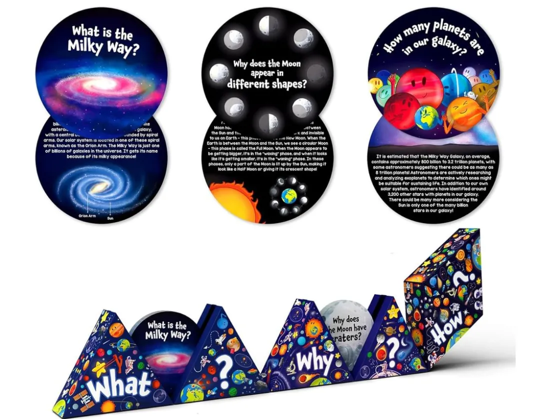 Exactly how old is the earth? Why does the moon have craters? How many constellations are there? All this and more in this fascinating scientific set! Simply unroll the box to reveal three sections packed with more than 70 illustrated fact cards. Explore the what, why and how of outer space in simple terms, from astronauts to quasars, planets to comets. Did you know that Saturn has a whopping 146 moons in orbit? Brilliant stuff!