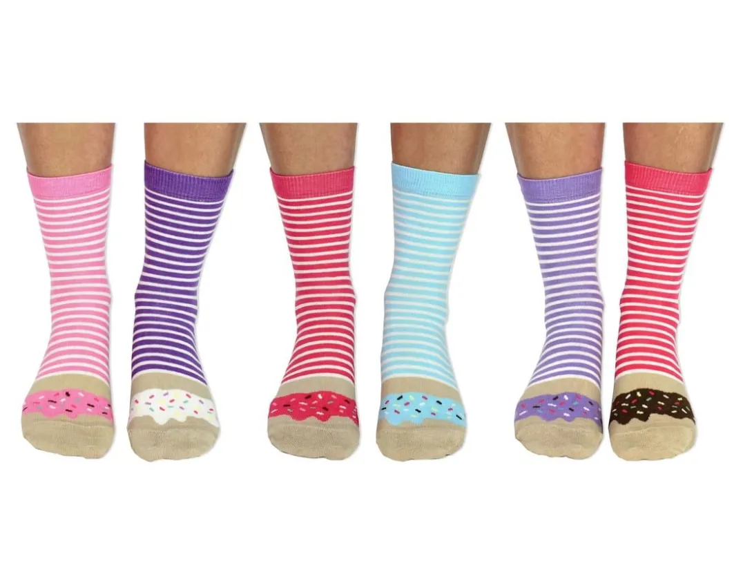 Show your sweet side with these six mix and match odd socks in a tray of tasty colours.
