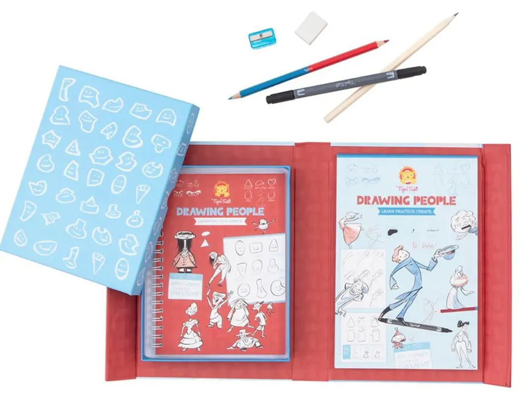 This brilliant set contains a fantastic Drawing Guide to take you through the steps of drawing people. From body shapes and facial expressions to poses and positions, follow the 24-page booklet to create your own pictures packed with personality. Then practice the techniques on the handy 40-page sketch pad with three pencils and a dual-ended fineliner. Also includes a sharpener and eraser, all packed in a sturdy travel case. Creative fun!
