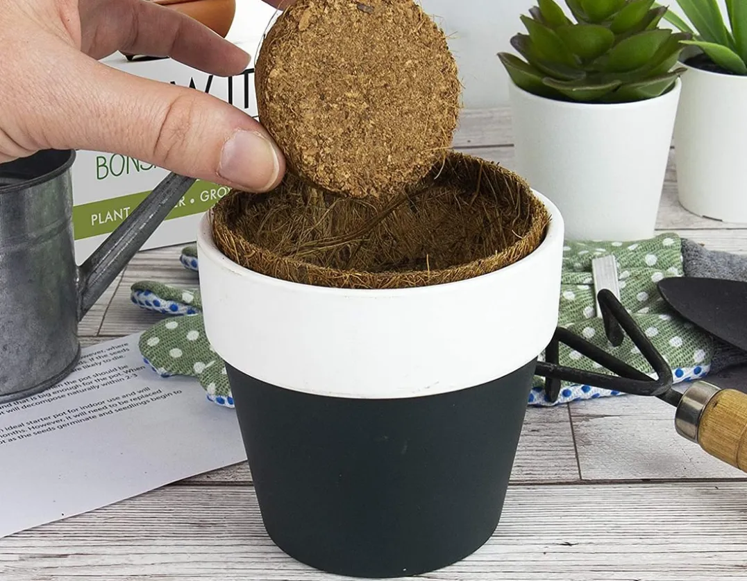Everything you need is inside this gift box including starter growing pots made from coconut husk, compost discs which expand when watered, four packets of seeds and a booklet containing growing tips. A unique and unusual gift idea, green fingers are not required to grow a range of beautiful bonsai trees. Will add a touch of Japanese elegance to any room.