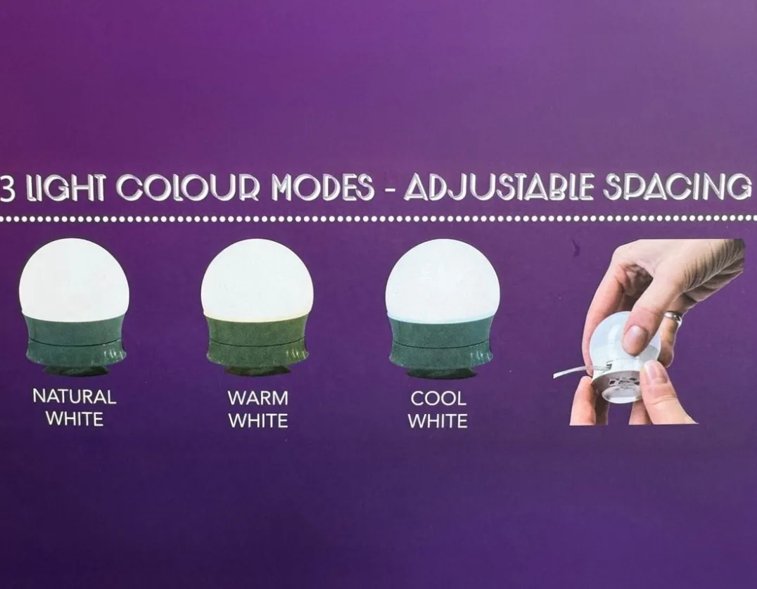 Get ready like a star and brighten up your space with these 4.5m long Hollywood vanity lights. Made up of ten dimmable LED bulbs, they have three different light modes in natural white, cool and warm – perfect for making sure your makeup is flawless! USB powered with adjustable bulb spacing, they’re so easy to install. Simply attach to your mirror using the suction cups on the back of the bulbs, no tools required. Ready for your close up?