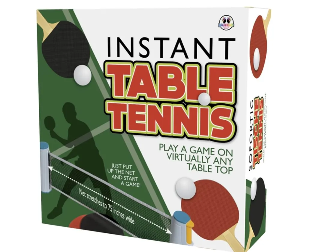 A clever table tennis set that allows you to play the game on virtually any table top.