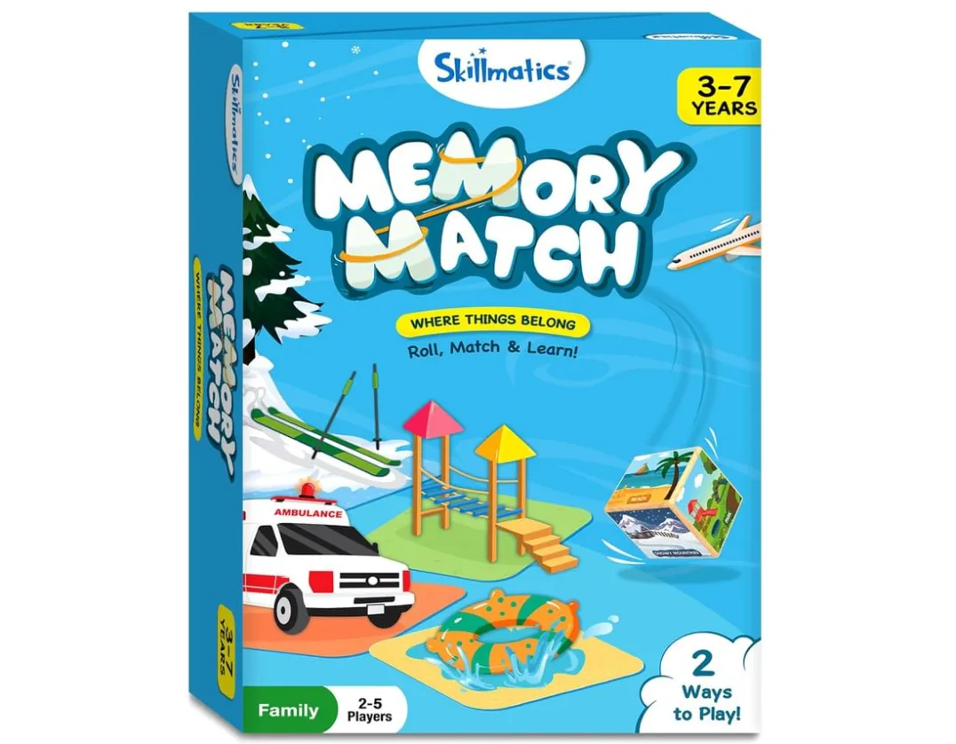 Which of these three objects lives at the beach… Suitcase, Seashell or Stethoscope? In this brilliant memory game, roll the wooden dice and flip over the tiles as you search for objects that match your location. From the park to the airport, there are lots of familiar things to spot! Gather six objects that match your location card to win. Great for observation and logic skills, the whole family can play this fun game together. A memory marvel!