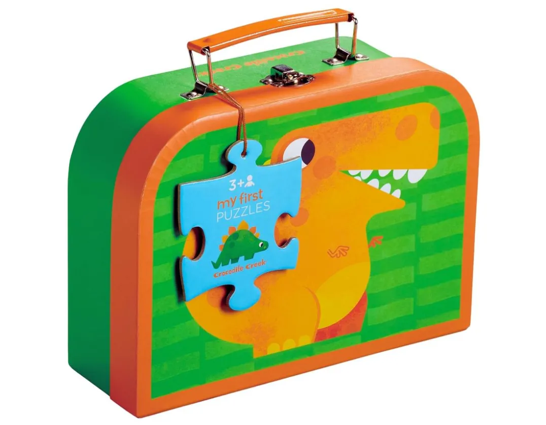 Perfect for little fingers with big chunky colourful pieces, this clever set has dinosaur themed puzzles. Start with the basic 6-piece diplodocus, then progress with the 9-piece T-rex, and the 12-piece Stegosaurus! Ideal for taking with you on the go with an adorable 23cm green and orange carry case, just pop all your pieces inside. From the lovely Crocodile Creek range, promoting step-by-step learning and confidence building. T-rexcellent!