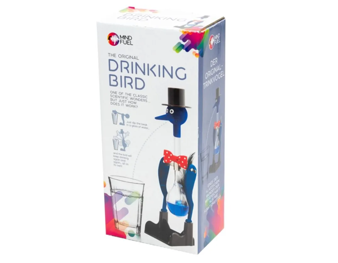 This interesting bird has been a scientific novelty favourite for decades. Standing 20cm tall, watch as he bobs his blue beak into a glass of water, over and over again. He operates like a clockwork toy, but there are no gears or springs here – just science! Complete with top hat and bow tie, this dapper chap is an example of a heat evaporation engine. The blue liquid in his body demonstrates the scientific concept for curious onlookers… Im-peck-able!