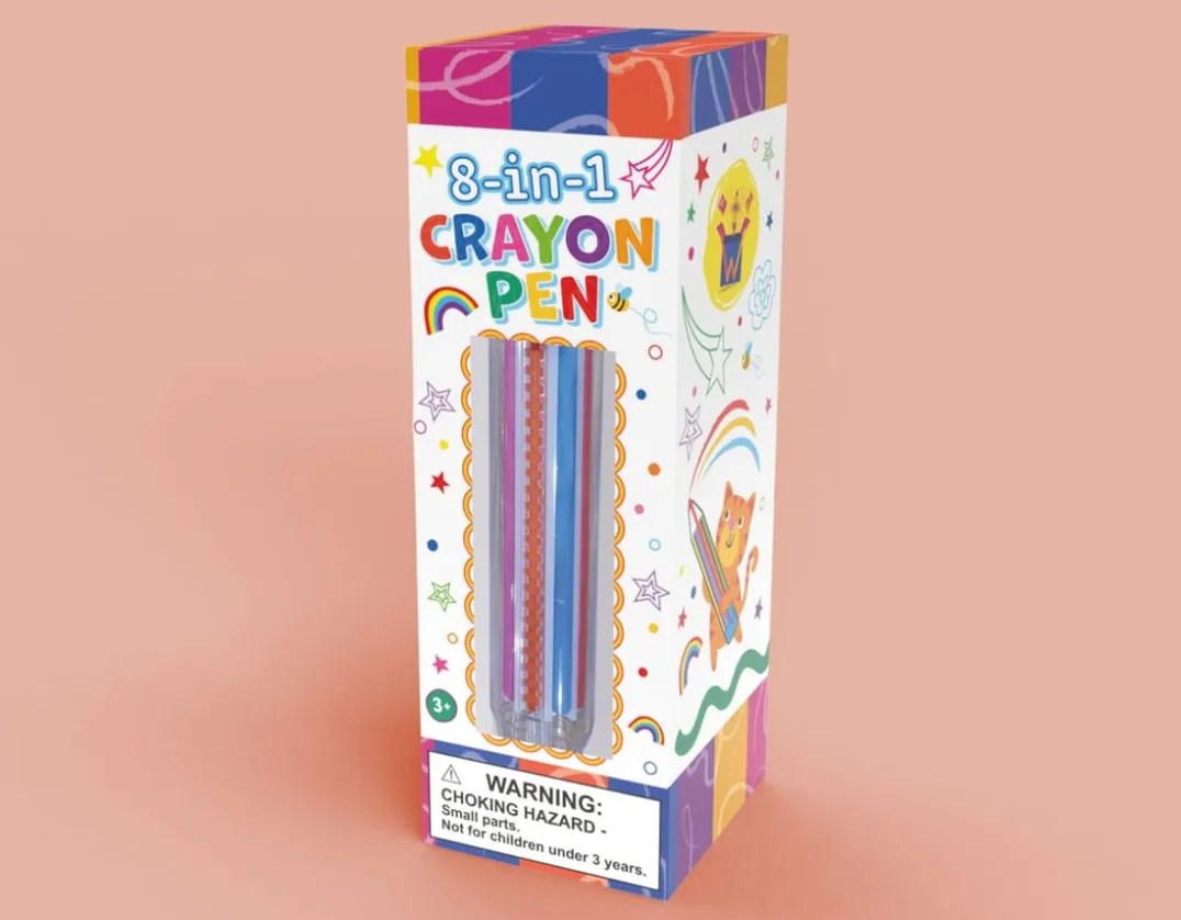 Multi-coloured crayon pen with eight shades – great for colourful notes and doodles!