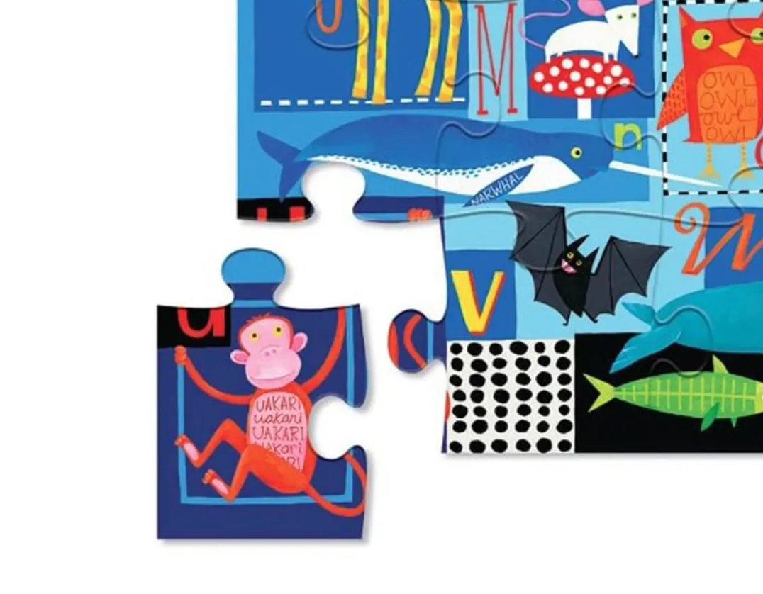 Explore early ABCs with this funky puzzle! Assemble the 24 extra-large pieces to reveal an engaging image with all the letters of the alphabet and their corresponding animals. Little ones are sure to enjoy spotting and matching the creatures – from G for Giraffe to W for Walrus! Each robust piece is perfectly sized for little hands and the puzzle even comes in a snap-shut case. Best of all, U is for the crimson faced Uakari. Now you know!