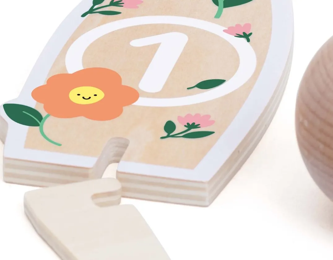 See who will get the highest score with this brilliant indoor and outdoor flower bowling set! Each pin is uniquely numbered for easy scoring and learning, along with a lightweight bowling ball just the right size for little hands. The set features six 19cm pins along with six stands and is crafted from durable FSC certified wood. Perfect for play dates, simply pop the pieces into the included adorable canvas bag to take with you on the go. Strike!