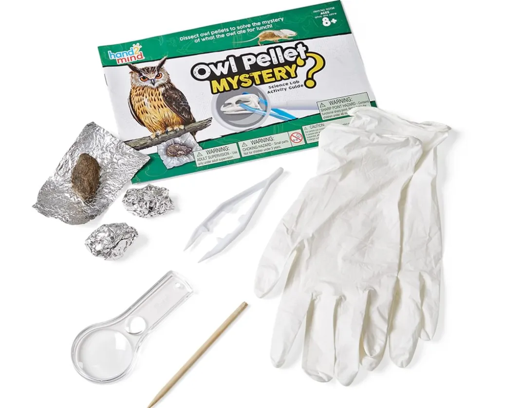 After an owl eats, it regurgitates an odourless pellet, packed with pieces it couldn’t digest. This cool kit contains three real ones for you to investigate! Using the gloves, tweezers and magnifying glass included, dissect each one to find out what the owl had for lunch. Sort and assemble the bones to discover who came for dinner – is it a shrew, mole, bird or something else? A fascinating insight into these amazing hunters of the night. Brilliant stuff!