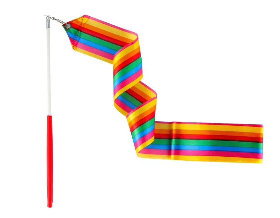Extra-long rainbow streamer for dancing, gymnastics and more.