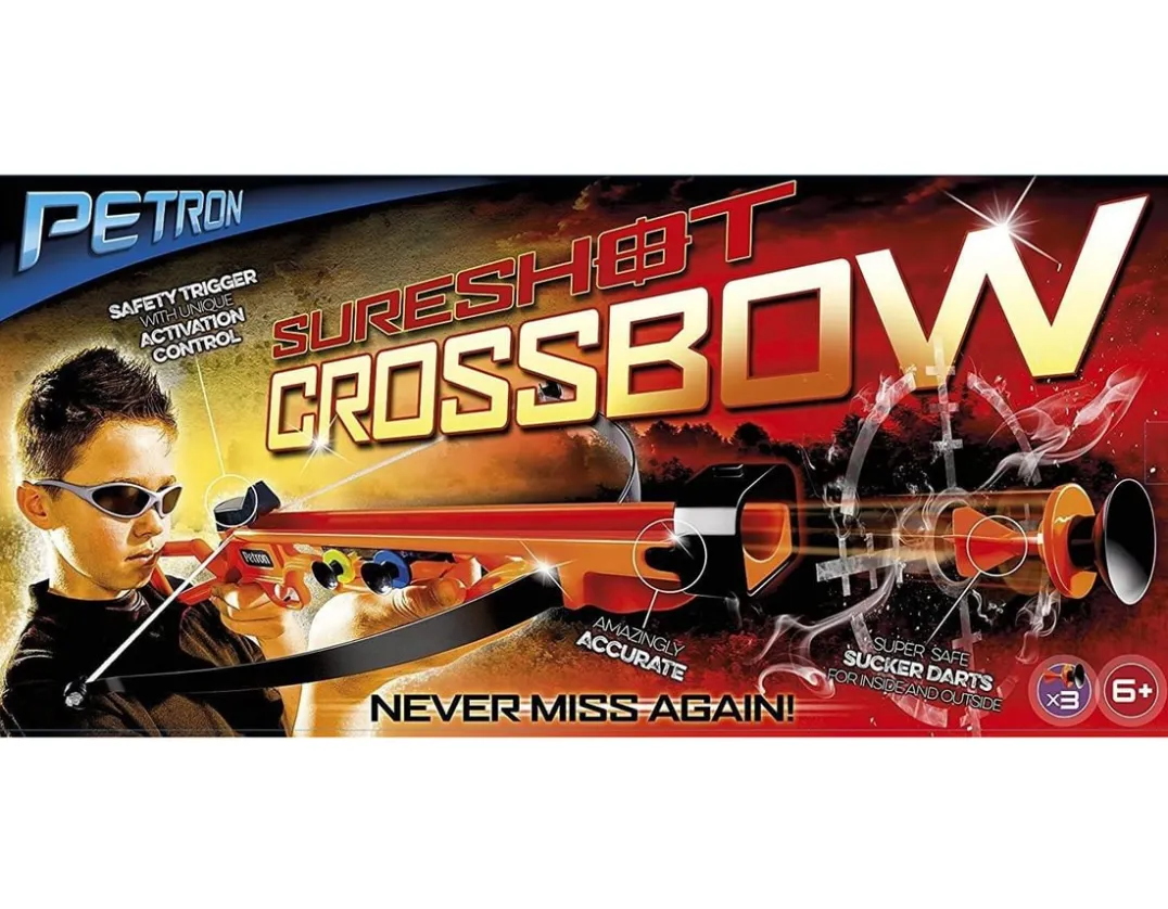 Sturdy and accurate toy crossbow – shoot six super-safe sucker darts at a 25cm target.