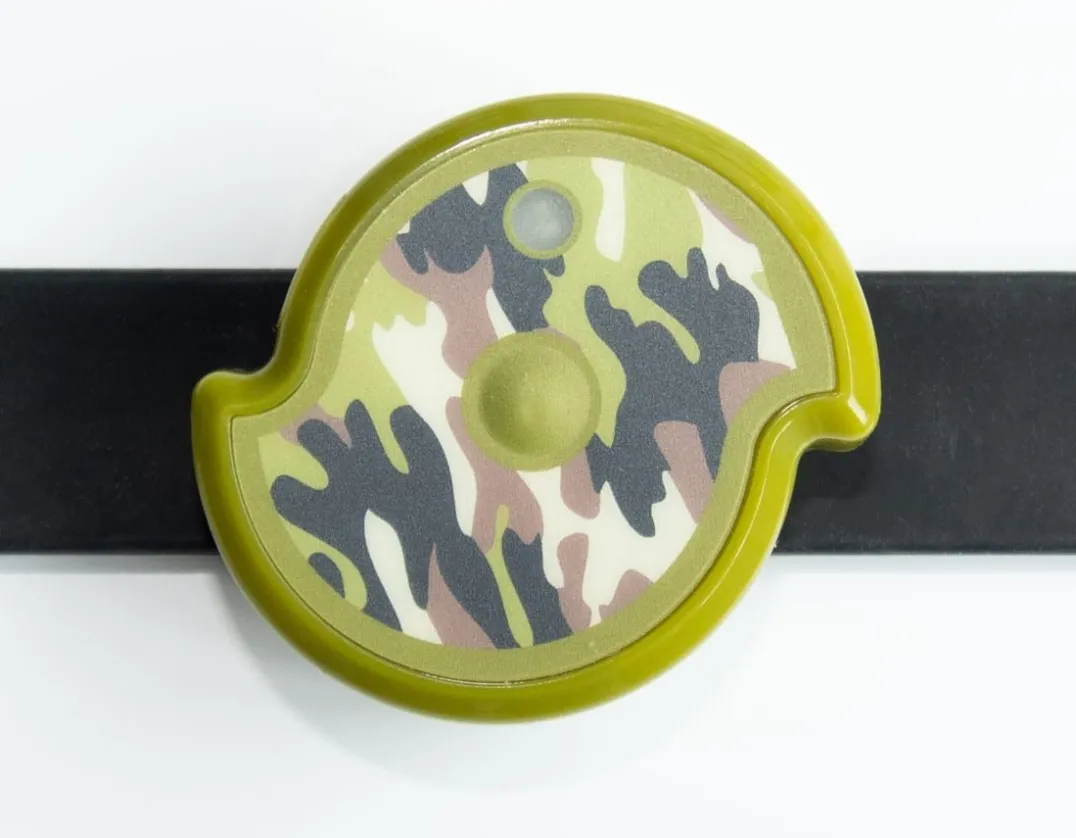 An innovative rotating wrist torch with a simple snap strap and cool camo print.